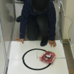 ロボットが思い通りにうまく動かないときには、動きをじっくりと観察します。そしてその動きと、生徒が自ら動きを考えて数字を組み合わせて作ったプログラムの両方を見比べて、うまく動かない箇所を見つけ出しながら修正を繰り返すことで課題をクリアしていきます。だんだん課題も難しくなってきたので、時間をかけて焦らずゆっくり一歩ずつ進めています。