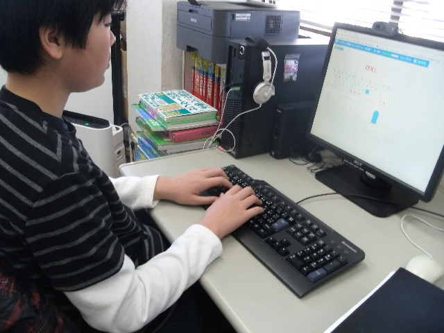 まずはタイピングの練習。プログラミングはキーボードから命令を打ち込みます。せっかくの機会なので、きちんとした指運びを覚えてもらうためにタイピングの練習を入れています。