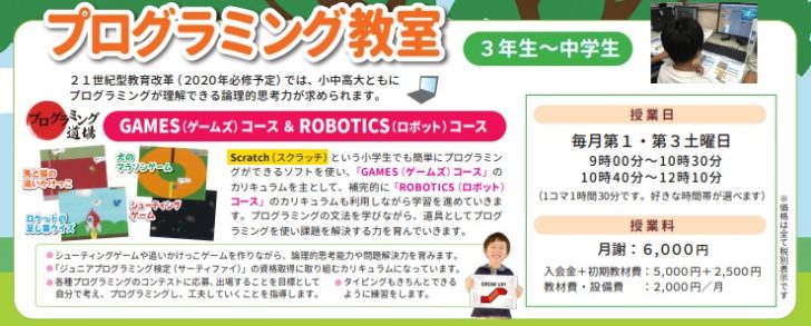 プログラミング受講生には先日、「新年度に向けてのご案内」の紙を生徒に渡しましたので、保護者の方は併せてご覧いただければと思います。