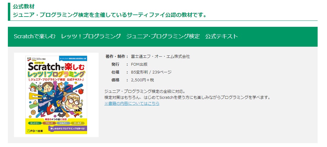 Scratchで楽しむ レッツ!プログラミング ジュニア・プログラミング検定 公式テキスト (FOM出版 価格2,500円(税抜))
