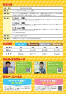 プログラミングコンテストは近年のプログラミング教育の需要の高まりから様々な大会が日進月歩で始まっていますが、一例としては、「全国小中学生プログラミング大会」や「U-22プログラミングコンテスト」をはじめ、その他たくさんの大会があります。