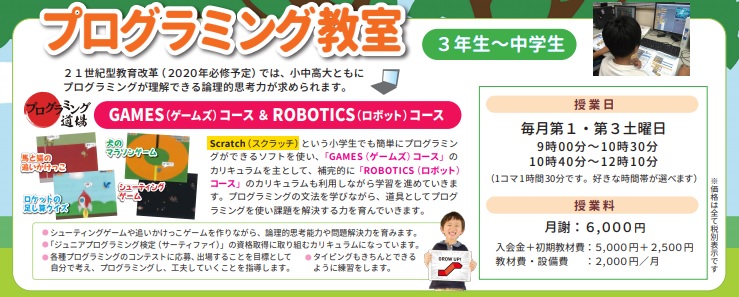 プログラミング受講生には先日、「新年度に向けてのご案内」の紙を生徒に渡しましたので、保護者の方は併せてご覧いただければと思います。
