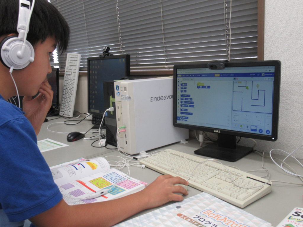 今日は、大雨の影響や中学生は期末試験前で来られない生徒もいましたが、朝の9時から生徒たちは真剣な顔でプログラミングの課題をこなしたり、作品を作っていました。