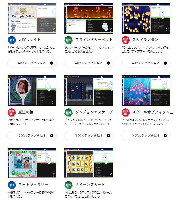 これが一番太っ腹だと思います。ちょっと前までは1ID当たり14万円で売られていたカリキュラムです。今でも5万円程度するものです。それを無料開放してくれています。詳細は以下のリンクの記事をお読みください。ディズニーのキャラクターや世界観の中で、プログラミングについて初歩から学ぶことができる教材です。