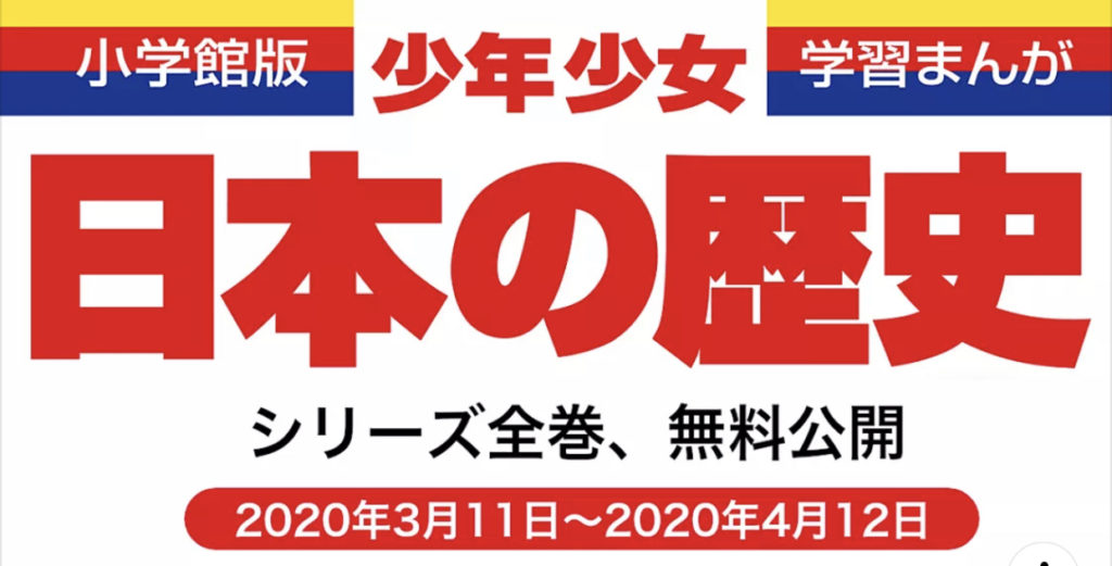 小学館の、日本の歴史まんがシリーズも無料開放されたようです。スマホでもタブレットでもなんでも読めるので是非読んでみてください。私も小学生の頃、学校の図書館にあったのが好きで、良く読んでいた記憶があります。