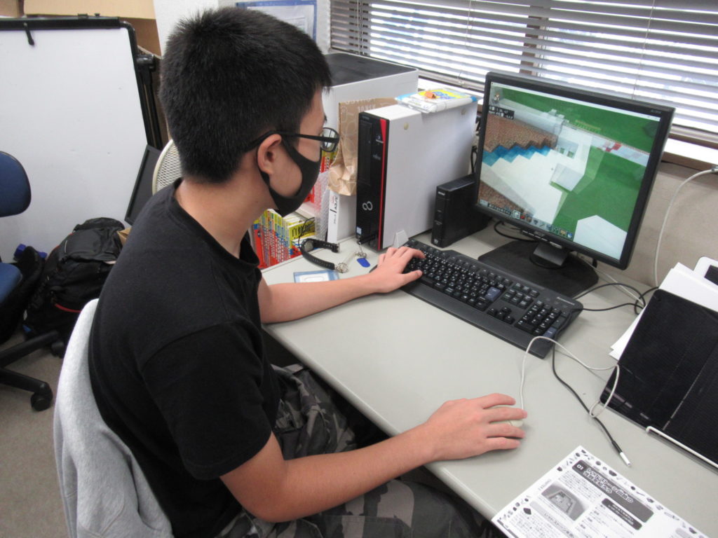 マインクラフトの作品コンテストに応募する生徒には、「レッドストーン回路」の使い方を説明しました。レッドストーン回路はコンピュータの動作原理になっている「論理回路」と同じになっていて、使いこなせばマインクラフトの世界の中に、様々な動作の「仕組み」を入れることができます。