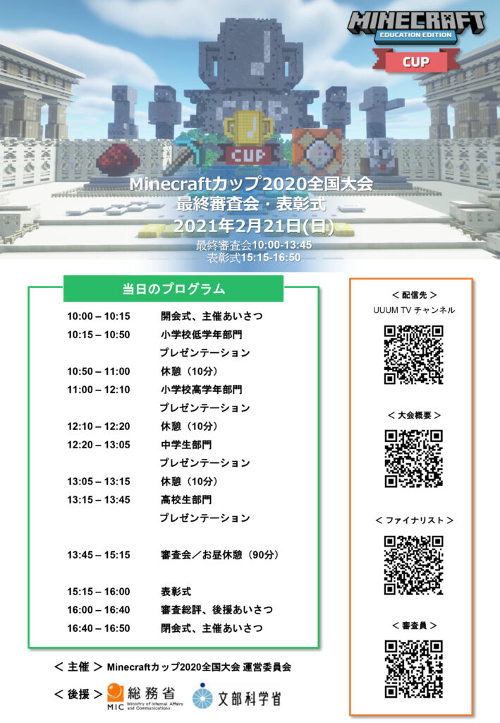 2月21日(日)にオンラインで開催されるMinecraftカップ2020全国大会の配信先URLが公開されました。