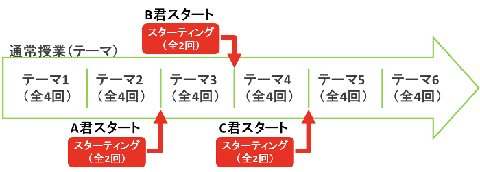 生徒の習熟度に合わせたカリキュラム(テーマ)で進めていきます。